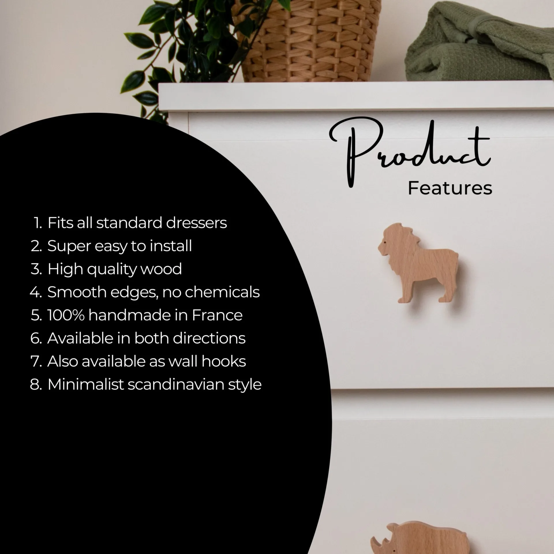 Transform your child’s furniture into a captivating safari with the FAB-FABRIK wooden “African animals” drawer handles. Designed to personalize and embellish dressers, wardrobes and drawers, these original handles combine practicality and playful design.