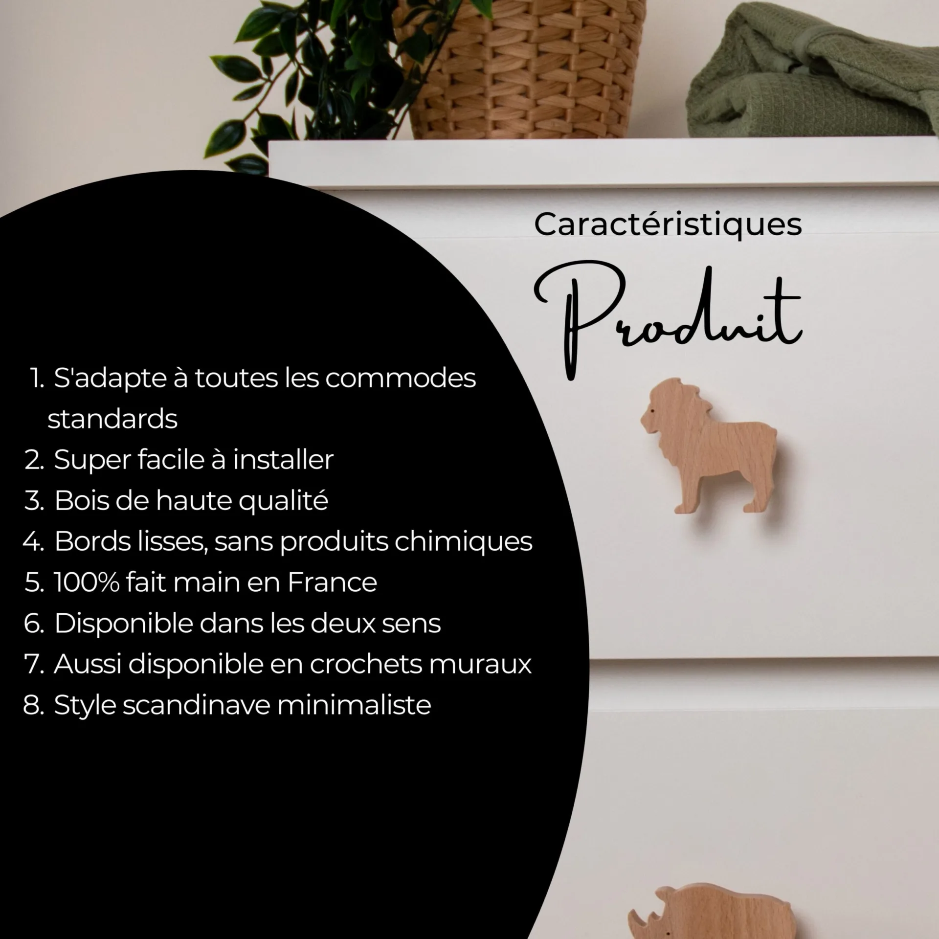 Transformez les meubles de votre enfant en un safari captivant grâce aux poignées de tiroir « animaux d’Afrique » en bois FAB-FABRIK. Conçues pour personnaliser et embellir commodes, armoires et tiroirs, ces poignées originales allient praticité et design ludique.